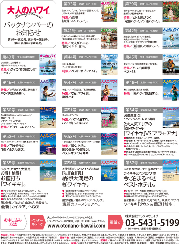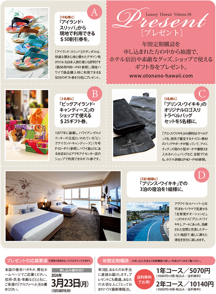 今号の「大人のハワイ」をご覧になって、おもしろかった記事とつまらなかった記事を教えてください。